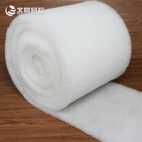 初效进风口棉制作原理:根据客户的要求制定配方,包括纤维的配比和克重的把握以及损耗的计算。准备原材料由机器的传送带将棉运往梳理机进行2次梳理之后进入下道工序。吐棉机将过滤棉一层一层均匀平铺于传送带上,这里需要注意的是要严格要求过滤棉平铺均匀。然后是热风定型进入烘干设备中,它将空气过滤棉高温烘干后,纤维与纤维之间紧密相连。最后裁剪成卷,这种使用热风成型的初效过滤棉成为热风棉。